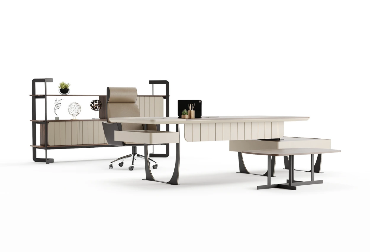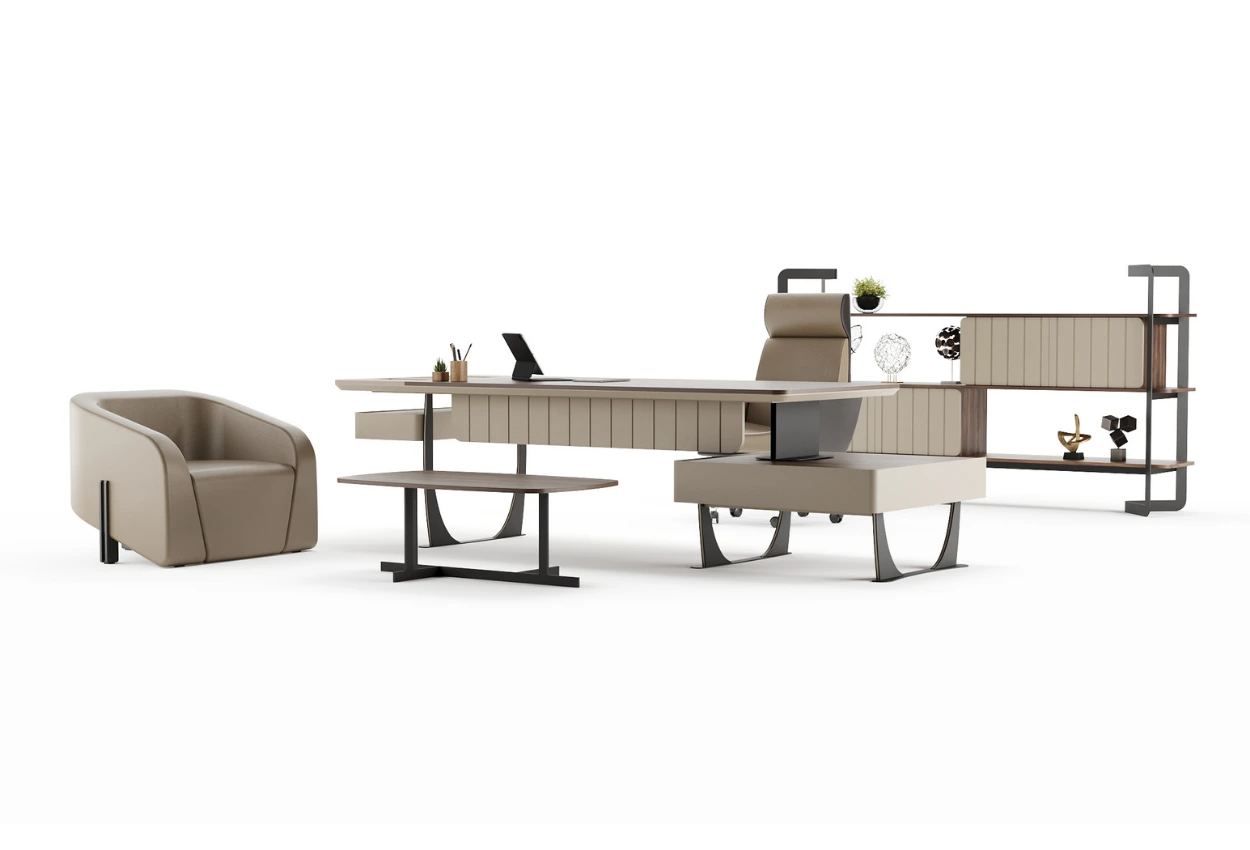 Yalın ama etkileyici… OSIF, zarif kıvrımları ve açık tonlarıyla ofisinizde sade bir zarafet yaratır. Metal ayaklar ve raf sisteminin dengeli tasarımı, hem fonksiyonel hem de estetik bir düzen sunar. Konforla tasarımın buluştuğu bir çalışma alanı arayanlara özel.